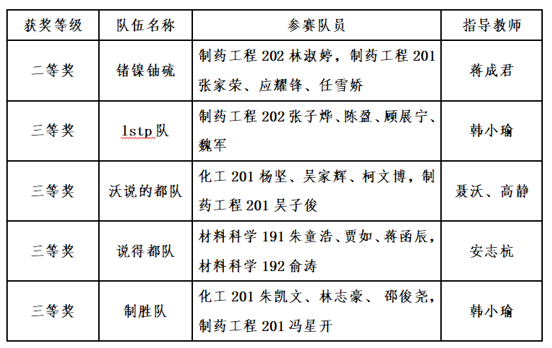 近日,“宇和政盛·同源康·国药杯”浙江省大学生化学竞赛获奖名单公布,生物与化学工程学院学子获二等奖1项、三等奖4项。