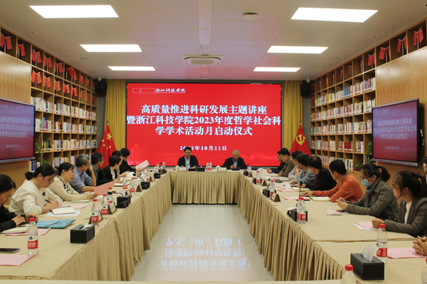 陈先春介绍了2022年度省内哲学社会科学学科发展和高级别课题立项的基本情况。他对近年来学校哲学社会科学研究取得的成绩表示肯定。陈先春指出,浙江科技学院非常重视哲学社会科学工作,有一支数量可观的社科人才研究队伍,学科发展后劲和课题研究发展潜力大、空间足。他表示,高级别课题是学科评估的重要指标,建议学校有组织地开展好高级别课题的申报工作。