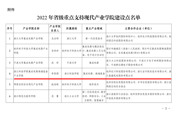 近日,浙江省教育厅、浙江省经济和信息化厅联合发布《2022年省级重点支持现代产业学院建设点名单的通知》,伟德官网集成电路高端装备产业学院成功入选。