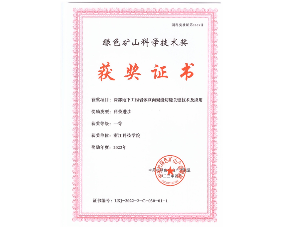 4月16日,伟德官网主持完成的“深部地下工程岩体双向聚能切缝关键技术及应用”获2022年度绿色矿山科学技术奖(科技进步)一等奖,该项目以浙江科技学院为第一完成单位,邹宝平教授获“绿色矿山-青年科学技术奖”。