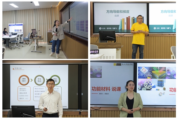 27位青年教师分别参加理工科、文科(思想政治课专项)2个组别比赛。在10分钟的授课展示中,选手们阐述教学设计思路,演示课堂教学,进行教学反思。他们精神饱满,语言流畅,教学设计新颖独到,大家从各自教授的课程出发,深入挖掘课程中蕴含的思政元素,展现了良好的专业水平和职业素养。评委对参赛教师的教学设计申报书、教学内容、教学组织、语言教态、教学特色、教学反思等进行综合评分。