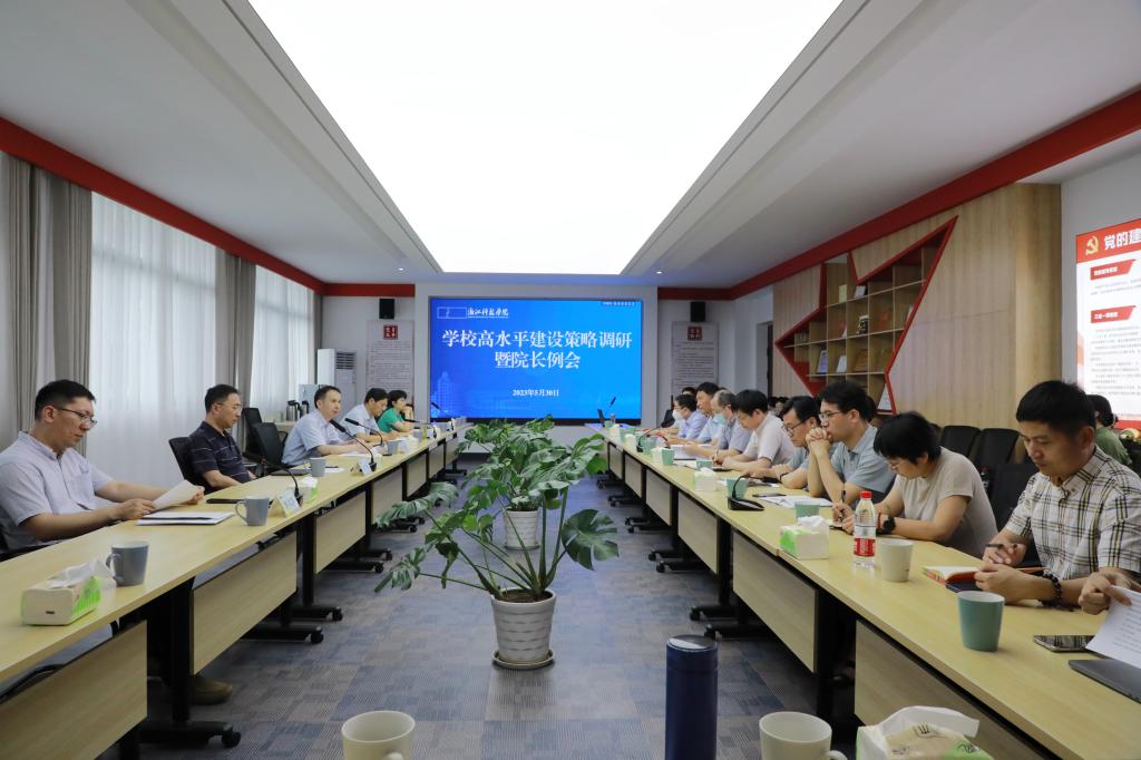 5月30日下午,学校召开高水平建设策略调研座谈会暨院长例会,统筹谋划学校高水平建设和高质量发展。校长陈建孟主持会议并讲话,副校长单胜道、万健、陈平、李其朋以及各二级学院(部)、相关职能部门负责人出席会议。