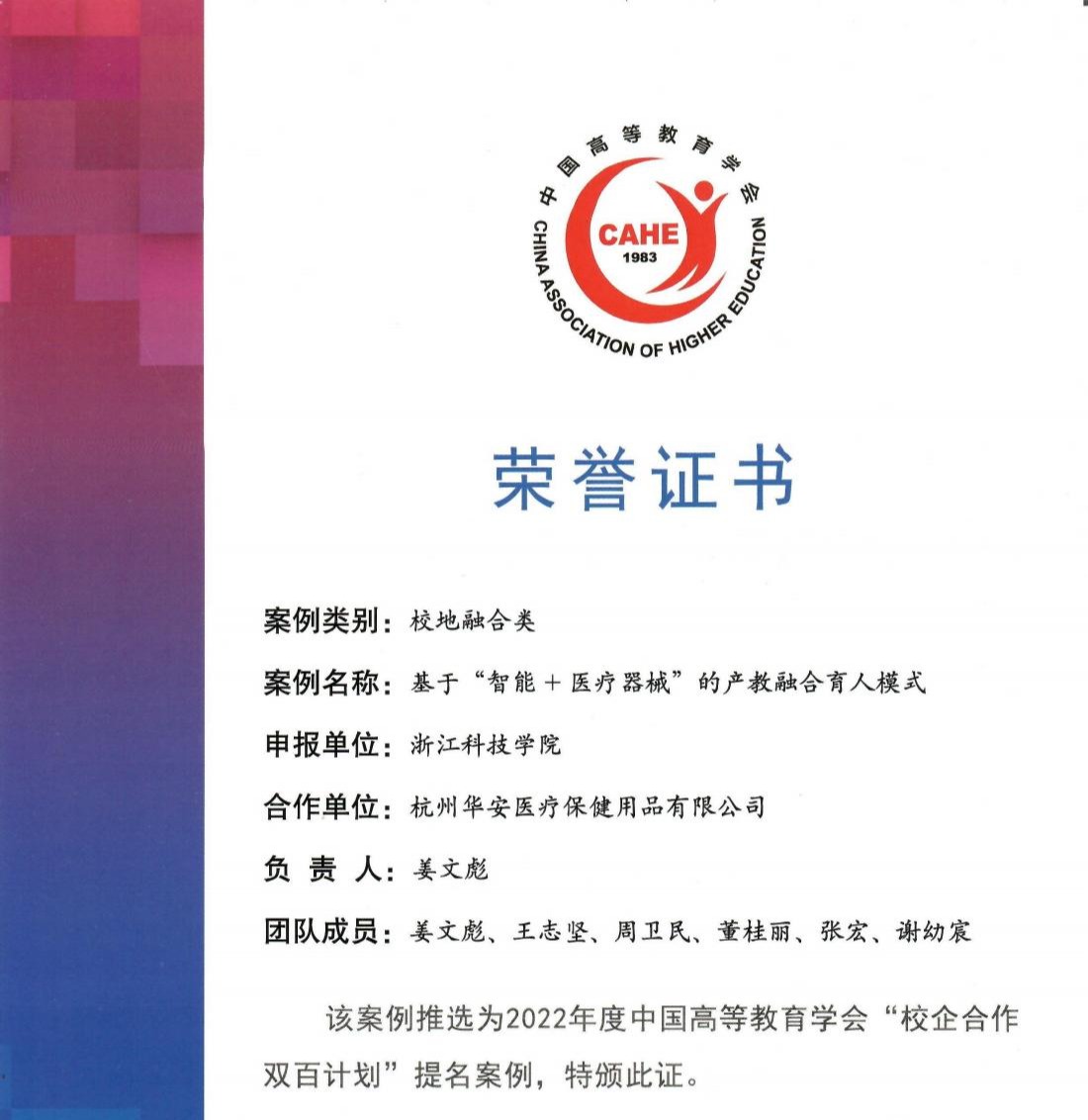 “基于‘智能+医疗器械’的产教融合育人模式”这一案例面向浙江省三大产业高地之一的生命健康产业,与杭州城西科创大走廊的创新型企业融合发展,促进人才培养、科创融汇发展、服务地方经济。项目开展两年以来,面向多专业开展校企合作,培养大量复合型的应用创新型人才;项目依托杭州城西科创大走廊,助力企业成为市、省高新技术研发中心,研发新品列入杭州市专项,企业成为浙江省专精特新企业。同时,学校作为浙江省数字化制造产教融合联盟牵头单位,依托该案例,在行业内推广“五融五链”产教融合校地合作育人模式,对促进学校后续深入开展产教融合、校企合作工作具有积极意义。(创新创业学院 董桂丽)