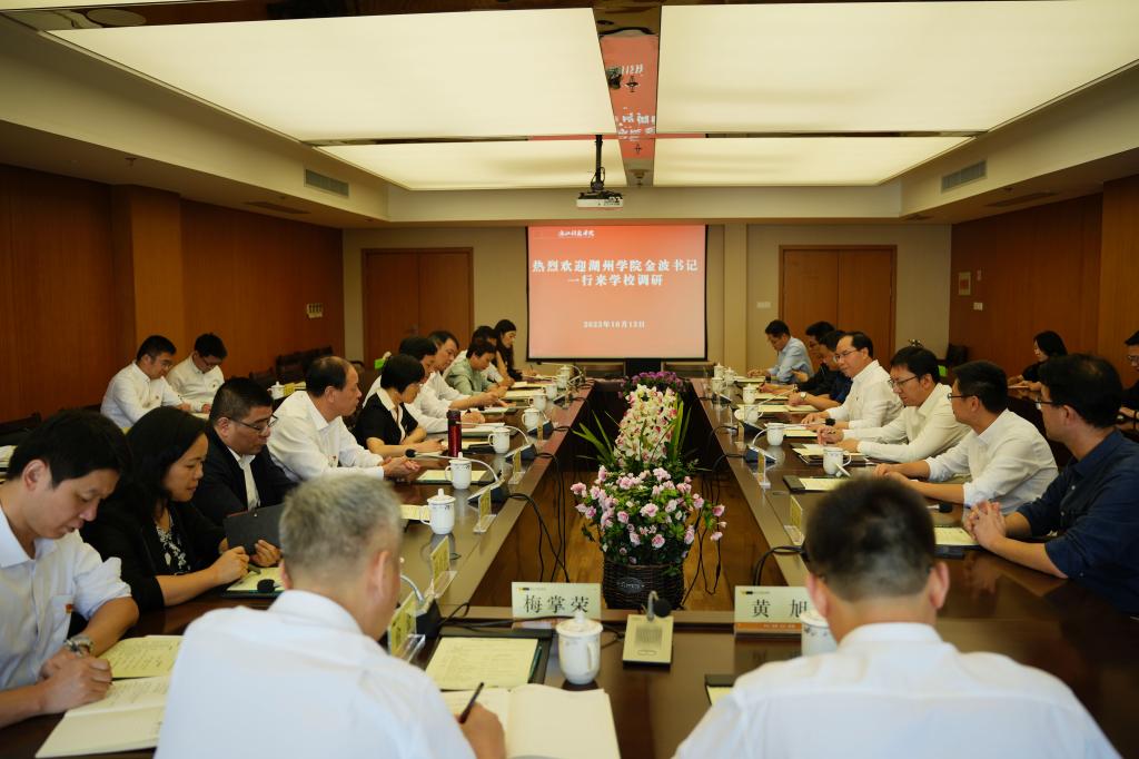 10月12日,湖州学院党委书记金波率该校党委班子成员及相关部门负责人来伟德官网安吉校区调研交流。校党委书记赵东福、副校长李其朋接待了金波一行,与来访客人座谈交流。相关职能部门负责人参加。