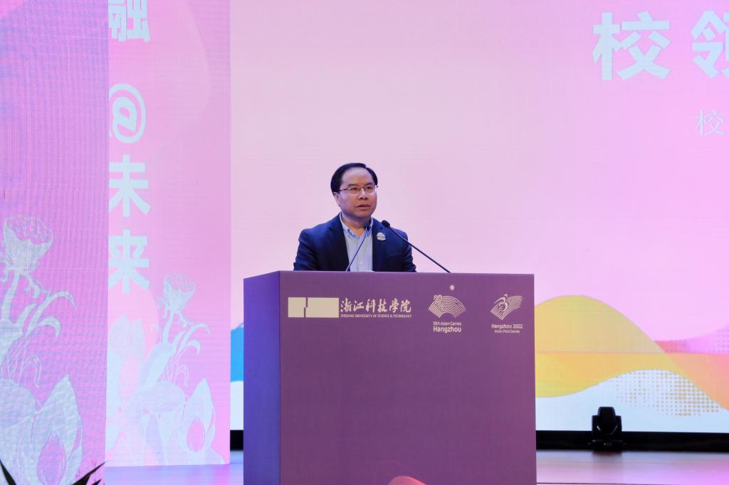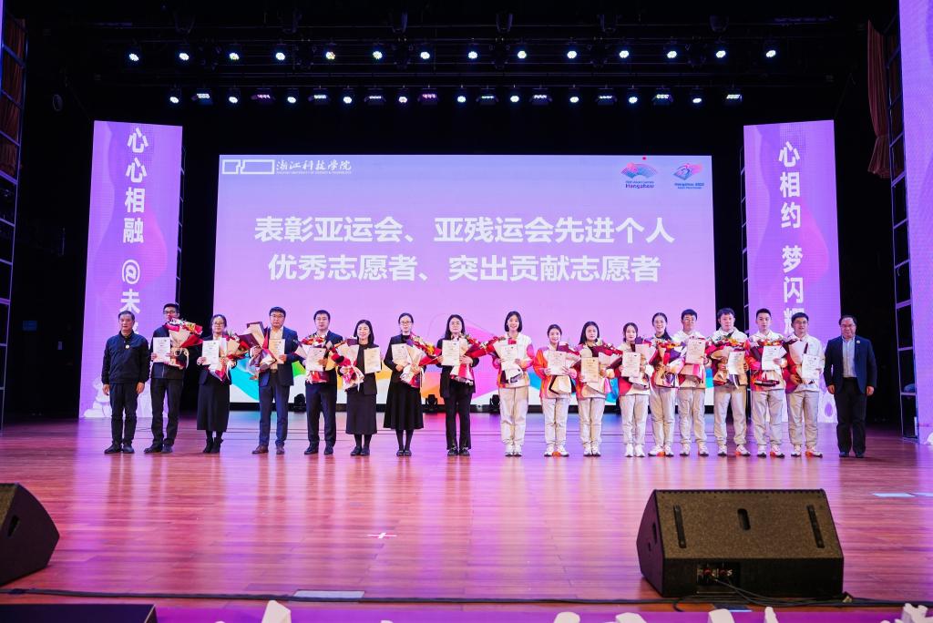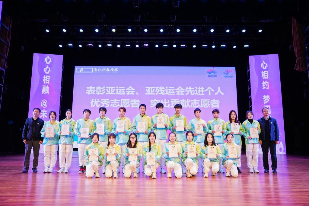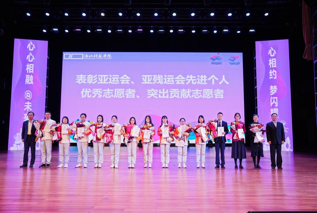赵东福代表学校向亚组委、亚残组委有关部门和黄龙体育中心场馆群运行团队给予的关心和支持表示衷心感谢。他对全体师生志愿者的工作给予高度肯定,“你们以最高标准、最大努力、最优状态圆满完成了各项服务保障工作”。赵东福希望,全体师生要开拓创新、追求卓越,把服务亚运的精神品质转化为落实立德树人根本任务的政治自觉;全体党员干部要胸怀大局、踔厉奋发,把服务亚运的精神品质转化为推动学校事业高质量发展的行动自觉;全体志愿者要接续传承、甘于奉献,把服务亚运的精神品质转化为加强文明交流互鉴的使命自觉。他指出,亚运后再出发,我们要深入学习习近平总书记考察浙江重要讲话精神,勇当先行者,谱写新篇章,大力推进创新深化、改革攻坚、开放提升,高质量发展建设高水平大学,为奋力谱写中国式现代化浙江新篇章贡献浙江科技学院的智慧和力量。