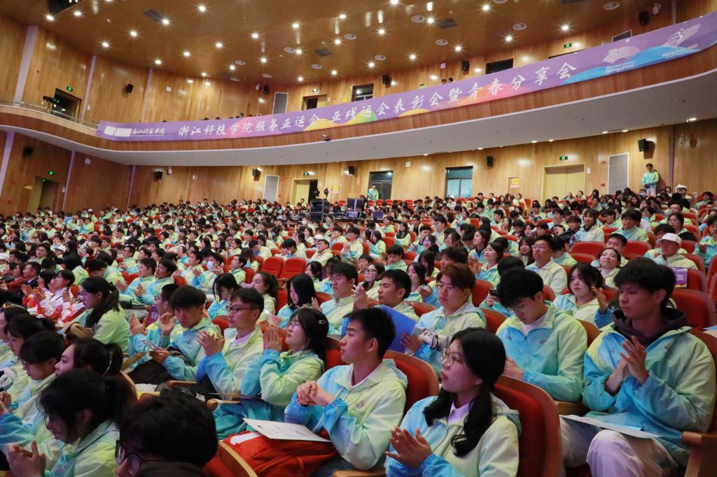 在青春分享环节中,教师代表、学生志愿者代表分享参与亚运会、亚残运会服务保障的幕后故事,再现志愿工作的精彩瞬间。