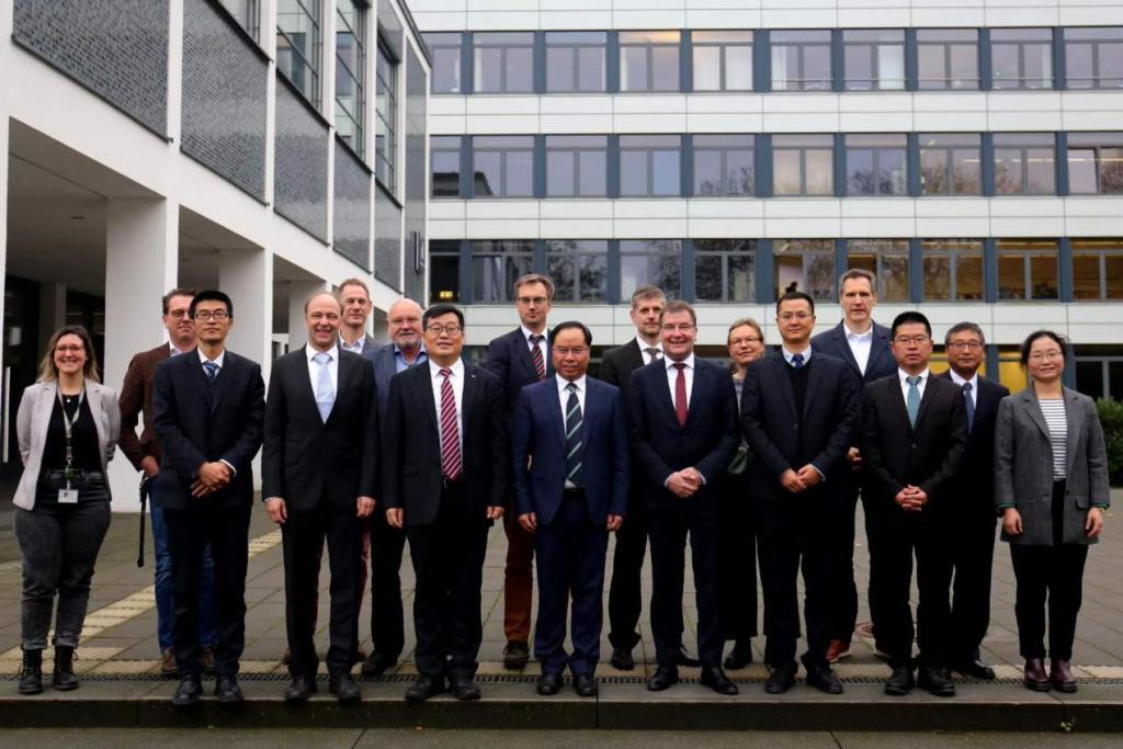 在汉诺威应用科学大学,代表团与该校校长约瑟夫·冯赫尔登教授(Prof. Josef von Helden)以及有关部门和二级学院负责人洽谈。双方回顾了两校近三十年的合作成果,重点就不断夯实合作基础,调整中德联合培养本科生“2+3”项目运行机制,开展“双校园+双学位+本硕一贯制”项目,扩大两校交流合作范围和拓展合作层次达成广泛共识。