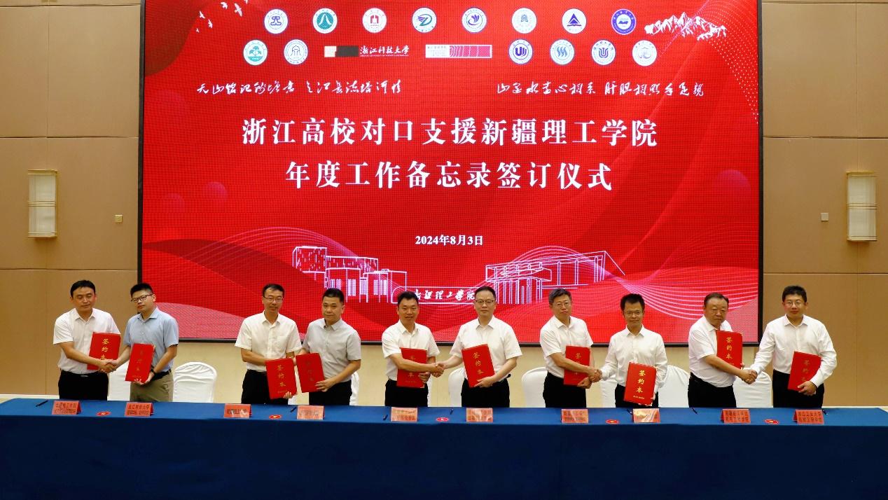 浙江高校对口支援新疆理工学院“一校一院”机制,即“1所浙江高校对口帮扶新疆理工学院1个学院、1-2个专业或1个处室”,是在进一步做实“浙—阿本科高校发展联盟”基础上,推动浙江省15所高校对口援疆工作往实里走、往深里走的新举措。新机制将坚持目标导向和需求导向,按年度签订工作备忘录,实现工作重心下移,做到目标具化、措施实化、成效显化,进一步提升对口支援的系统性和精准性。研讨会上,浙江省15所高校相关部门与新疆理工学院各二级学院和职能部门签订“一校一院”年度工作备忘录20份,挂牌对口支援共建学院13个。伟德官网挂牌支持新疆理工学院能源化工工程学院建设,宣传部、人事处、科研处、机能学院分别与新疆理工学院对口职能部门、学院签订年度工作备忘录。