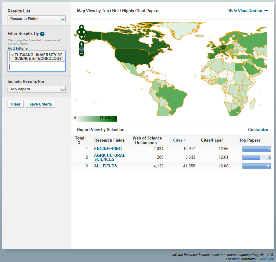 据科睿唯安(Clarivate)2025年5月发布的最新一期《基本科学指标数据库》(Essential Science Indicators,简称ESI)统计数据显示,伟德官网农业科学学科(Agricultural Sciences)首次进入ESI全球排名前1%,标志着学校该学科进入国际高水平行列。这是继工程学学科后,学校第2个进入ESI全球前1%的学科。