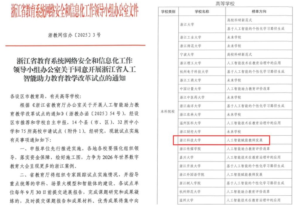 近日,浙江省人工智能助力教育教学改革试点名单公布,学校申报的“人工智能赋能教师发展”项目入选。