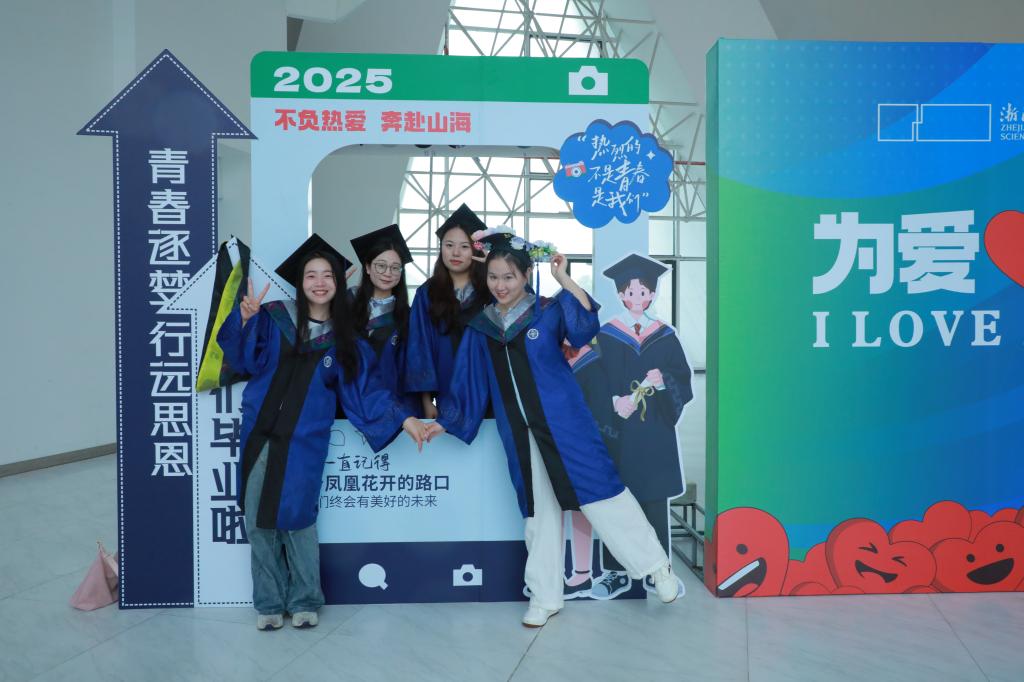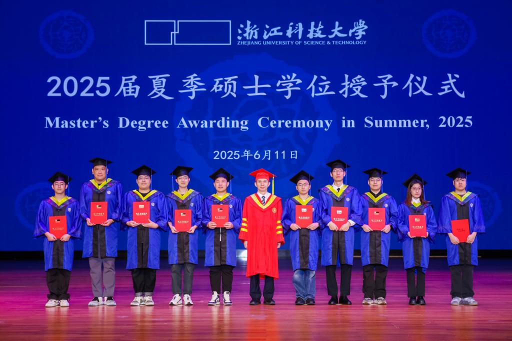 6月11日,2025届夏季硕士学位授予仪式在举行。校领导赵东福、陈建孟、李其朋、张日向、侯北平共同看望全体毕业生并合影。