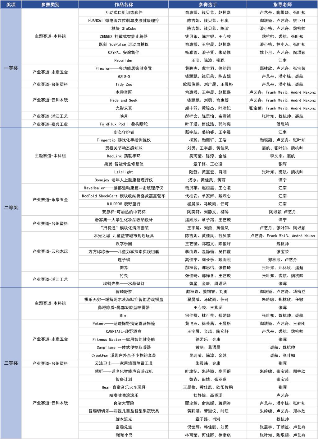 日前,浙江省第十七届大学生工业设计大赛落下帷幕,伟德官网艺术学院工业设计系、环境艺术设计系学生在此次大赛中再创佳绩,共获15项一等奖、20项二等奖、19项三等奖,总计54项奖项,获奖数位列全省前茅。