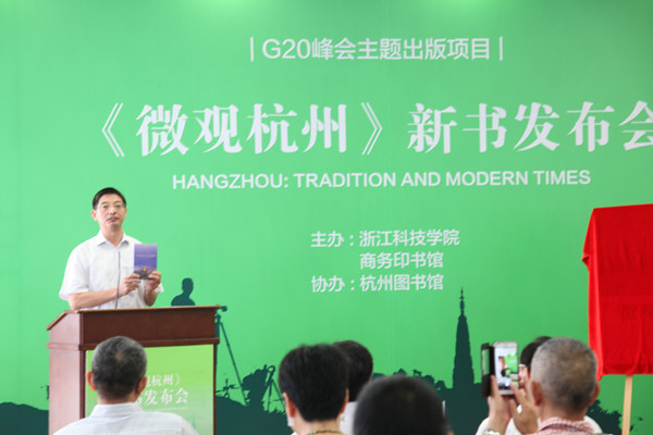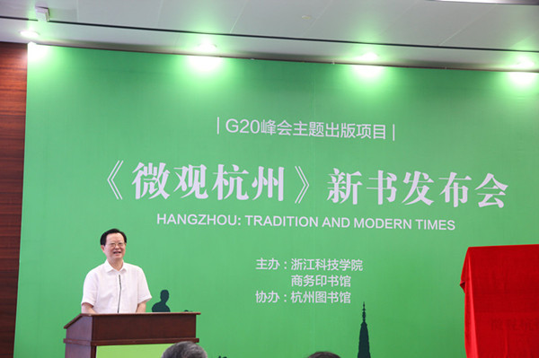 图3:图书主编、学校党委书记王建华教授介绍《微观杭州》