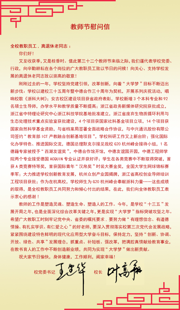 庆祝第32个教师节慰问信