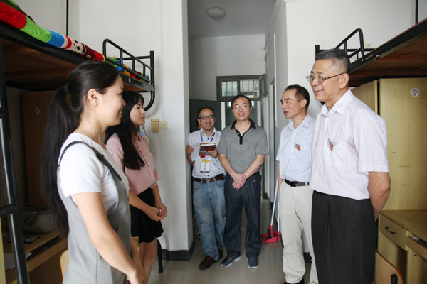 校领导走访学生宿舍看望新生和家长