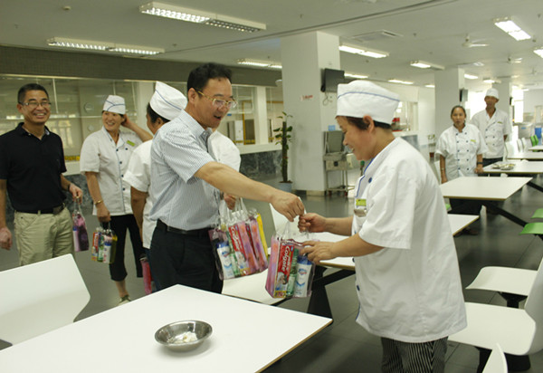 近日,校领导在职能部门负责人陪同下,分组走访慰问暑期坚守岗位的师生员工。走访过程中,校领导对坚守岗位的工作人员表示感谢,并特别叮嘱大家要注意防暑降温,劳逸结合。