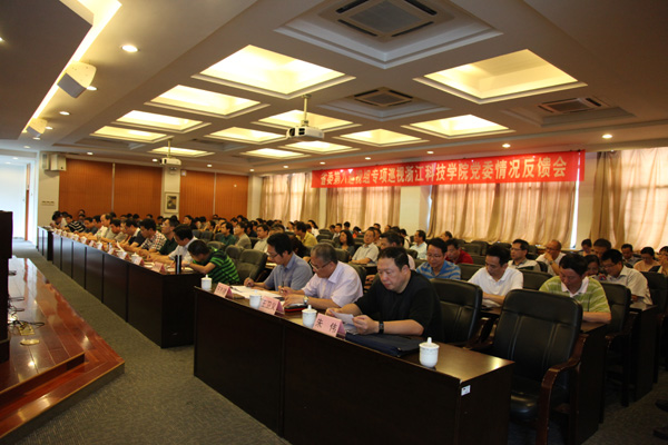 省委巡视组有关成员出席反馈会。浙江科技学院党委领导班子成员出席会议。学院中层正副职、高级专业技术职务人员代表、民主党派负责人,教代会、职代会执委会成员,近期退下来的校级领导等列席会议。