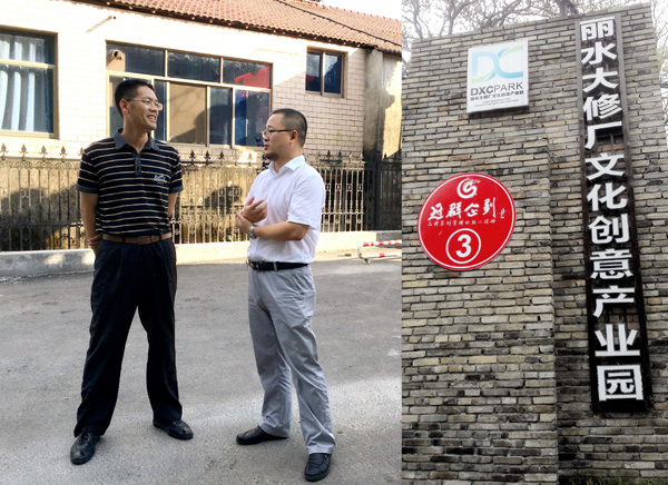 丽水市汽车运输集团股份有限公司党委书记、董事长、丽水校友会会长叶茂代表丽水校友欢迎母校老师的到来,并陪同参观了丽水大修厂文化创意产业园。青砖石墙下,伴随着迎面而来的阵阵凉风叶茂校友向李泽泉一行介绍了大修厂文化创意产业园的基本情况。大修厂文创园始建于上世纪六七十年代,是丽水市区完整保留下来的最早的工业遗址之一。丽水市委、市政府为提升区域竞争力,实现丽水市“绿色崛起、科学跨越”,提升城市软实力,推动瓯江文化大繁荣大发展,满足人民群众文化消费需求,提升生活品质,于2015年批复同意在原址上筹建丽水市首家综合性文化创意产业园。旧厂房经改造后“重获新生”,一砖一瓦,一门一窗,都保留着六七十年代的味道,目前已有20多家广告创意、设计服务、咨询策划等智能型企业入驻园区。叶茂校友说:“我从做实业开始,一步一步也加入了文化产业的队伍,创业的过程是最幸福的,我们文创园将秉承“文化智造未来、创意智闯天下”的理念,努力将其打造成为绿色生态经济的产业文化平台。”