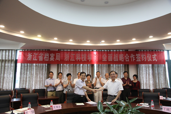 6月8日,在国际档案日来临之际,伟德官网与省档案局签署全面战略合作协议,启动实施浙江政务新媒体档案研究等项目合作,合力推进档案事业和高等教育事业共同发展、科学发展。