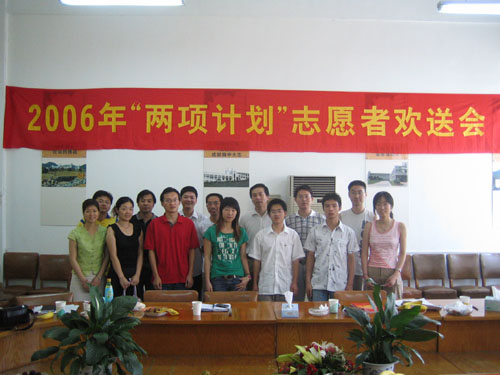 6月22日上午,伟德官网在学院路校区学校会议室举行了简朴又隆重的2006年“两项计划”( 大学生服务西部计划和省内欠发达地区计划)志愿者欢送会。校党委副书记陈浩出席欢送会并讲话。