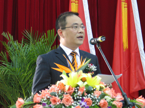 省团委副书记徐旭代表团省委、省学联对大会的召开表示热烈地祝贺。徐旭说,长期以来,浙科院共青团组织在学校党委的正确领导下,团结带领全校广大团员青年刻苦学习,锐意进取,奋发成才,在加强学生思想政治教育、活跃丰富校园文化和服务大学生成才等多个方面取得了比较显著的成绩。