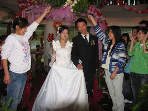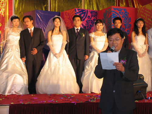 5月18日,小和山校区,霏霏细雨挡不住浓浓喜气,浙江科技学院首届“浪漫和山、玫瑰婚典”婚庆活动隆重举行。12对新人在师生的祝福声中喜结良缘。党委书记徐志平、校长杜卫、党委副书记胡浙平、副校长龚建立、陈根芳、吕进、纪委书记、工会主席鲁凤等校领导,以及新人所在部门的党政领导和分工会主席等出席了婚礼或晚宴。