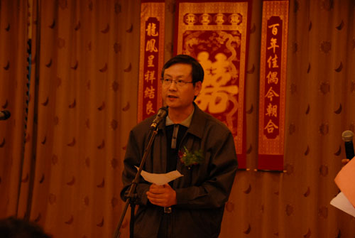 晚上,在伟德官网科源大酒店举办了晚宴。徐志平致祝酒词。他向12对新人表示最诚挚的祝福,祝愿新人们相亲相爱、永结同心、生活幸福、白头偕老。希望通过举办这次活动,进一步增强学校的凝聚力,希望新人们缘结小和山,情系浙科院,为学校的建设和发展共同努力。晚宴期间还安排了抽奖活动。两位来自德国的外国客人也满怀兴致地参加了婚礼和晚宴,并幸运地抽到了一等奖,为整个晚宴增添了新的花絮。
