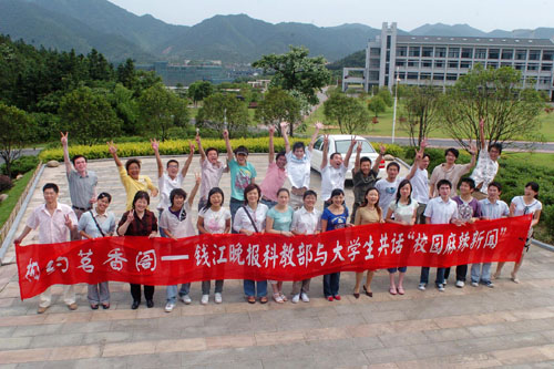 为给大学生提供一个便捷的新闻发布平台,让大家关注身边的新闻,捕捉新闻,发表新闻,通过报网互动,在第一时间把高校的鲜活新闻搬上报纸和网站,钱江晚报网络版推出了“校园麻辣新闻”版块(http://qb.zjol.com.cn)。版块尽管面世不久,但已网聚了不少人气,许多大学生通过网络将身边的鲜活新闻变成了铅字。为了解大学生的所思所需,打造栏目品牌,钱江晚报科教部记者将陆续走进各高校,与大学生面对面交流座谈。