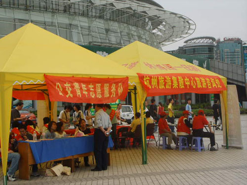 5月1日至6日,每天早上7点,生化学院青年志愿者就到了黄龙集散中心,开始了一天的志愿服务。期间, 20余名志愿者还去杭州西溪湿地开展志愿服务活动。