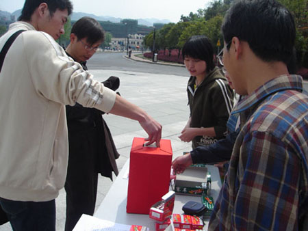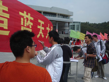 得知浙江工业大学02级国贸四班的郑丽萍同学身患骨癌,需高达20余万元的治疗费用的消息后,4月6号,建工学院土木理工041班与外语学院英语053班同学共同组织了“同在蓝天下”募捐义卖活动。