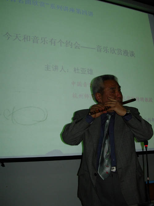 4月7日晚,五百工程之“百首名曲欣赏”第四讲在小和山校区C1-106举行。中国音乐学院教授、杭州师范学院音乐艺术学院特聘教授杜亚雄应邀作了题为“今天和音乐有个约会——音乐欣赏漫谈”的讲座。伟德官网师生近两百人聆听了讲座。