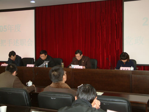会上,应方彩作了动员讲话,强调了这项工作的目的和重要意义。李建章对伟德官网民主测评工作作了具体要求。学校党委书记徐志平、校长杜卫分别作了年度总结报告。与会人员以无记名方式对学校党政“一把手”2005年度总结报告进行了民主评议,并对校领导班子成员进行了民主测评。