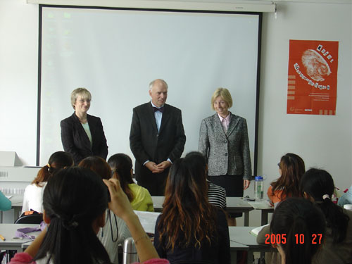 10月26日至10月28日,德国奥登堡/东弗里斯兰/威廉港应用科学大学校长弗里德里希 (Prof. Dr.Friedrichs) 教授和副校长格茨纳(Prof. Gruetzner)教授一行四人来伟德官网访问。来访期间,分别与伟德官网校长杜卫教授、副校长龚建立教授以及外语学院、生化学院、机械学院、电气学院、经管学院举行了会谈。双方就深化两校合作交流,特别是就旅游德语、生物工程、食品工程领域的学生联合培养及机械、经济、自动化领域共同举办国际化专业进行了深入、细致的探讨,并初步达成了一致意见。奥登堡/东弗里斯兰/威廉港应用科学大学校长一行四人还观摩了德语专业的德语教学,参观了德国文化区,与计划明年初赴德国进行语言实习的德语专业学生进行了交谈。由于德语专业学生的突出表现,奥登堡/东弗里斯兰/威廉港应用科学大学决定将招收实习生数从两名增加到四名。