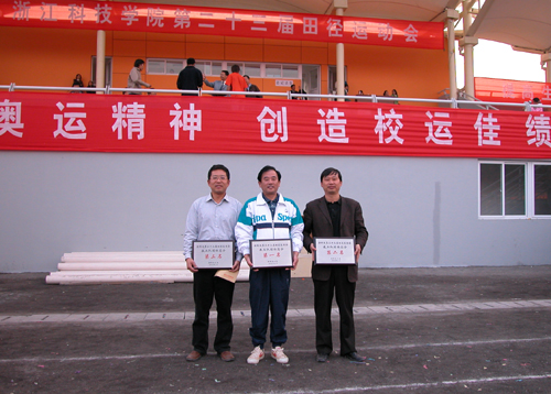 本次运动会是伟德官网历史上规模最大的一次运动会,也是进入新校区后第一次师生同堂竞技的运动会。800多名学生运动员和500多名教职员工运动员参加了60余个项目的角逐。艺术系田园打破学校女子标枪记录。机电系代表队、信电系代表队和求是学院表队分获学生组男子团体前三名;求是学院代表队、土木系代表队和外语系代表队分获学生组女子团体前三名。科源公司分工会勇夺教工组桂冠,中专部分工会和理学系分工会分别摘取亚军和季军。成教学院、理学系、教信系和生化系代表队获本届运动会“精神文明奖”。