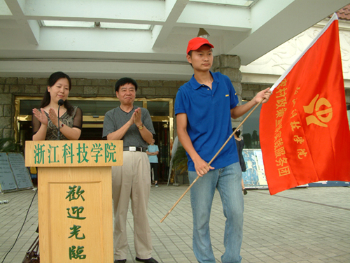 7月2日,2004年浙江科技学院暑期社会实践活动启动仪式在小和山校区宾馆广场前隆重举行。校党委副书记胡浙平向即将启程的大学生们致热情洋溢的开幕辞,并为实践小分队授旗。开幕式由校团委书记王静主持。