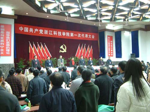 中国共产党浙江科技学院第一次代表大会经过两天紧张而又热烈的讨论,通过了中共浙江科技学院第一次代表大会关于中共浙江科技学院委员会工作报告的决议和中共浙江科技学院第一次代表大会关于中共浙科院纪律检查委员会工作报告的决议,选举了新一届党委和新一届纪委。会议于2003年12月26日下午胜利闭幕。