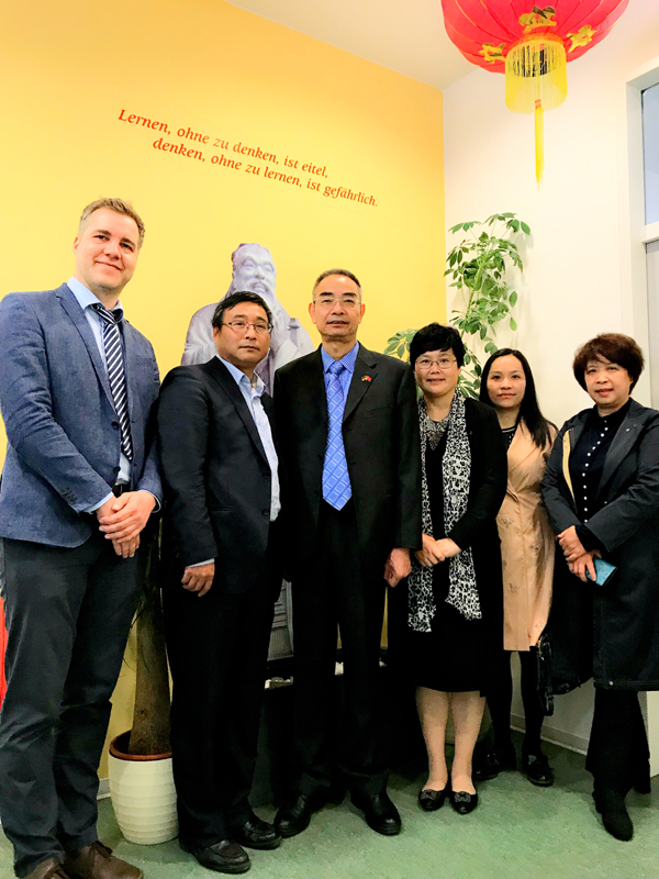 在德国访问期间,龚建立代表学校邀请德方高校参加明年9月在杭州举行的第七届中德论坛大会。在埃尔福特应用科学大学,代表团与校长Zerbe教授进行了会谈,就目前两校的各类合作项目和两校合作的未来发展等方面进行深入探讨。龚建立一行还考察埃尔福特孔子学院,了解孔院运行情况。在汉诺威应用科学大学,龚建立与副校长Heüveldop共话两校长久的合作历史和丰硕的合作成果,就继续深化两校的合作进行商谈。代表团一行与德方相关负责人出席伟德官网首个海外校友会——德国校友会成立仪式。代表团出席西海岸应用科学大学25周年校庆活动。龚建立对两校前期合作予以高度肯定,并畅想两校未来发展的美好前景。代表团就中德工程师学院的运行和发展战略等问题与德方进行了充分协商。龚建立一行还看望伟德官网在该校的交换学生,了解他们在德期间的学习和生活情况。