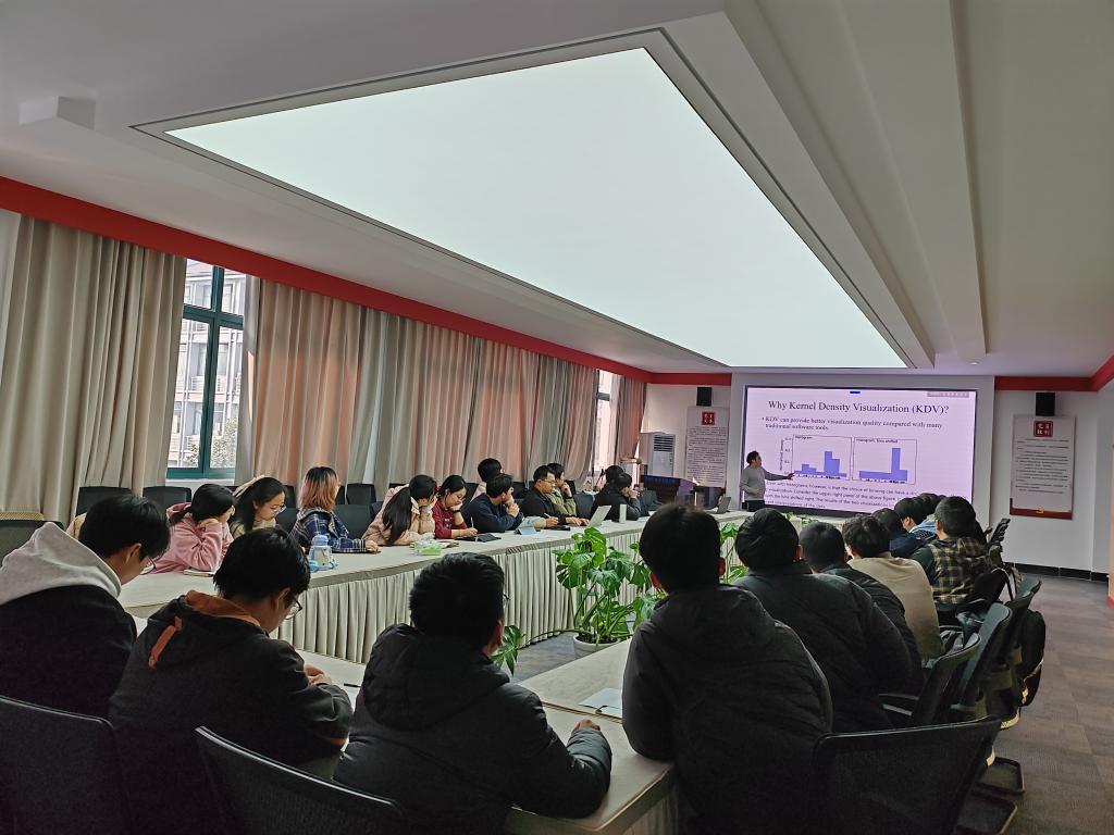 深圳大学计算机与软件学院陈梓楠副教授从核密度可视化算法的优化方法、相关理论依据以及其未来应用和挑战等方面进行介绍,开拓了参会师生的学术视野。在交流环节,大家就其涉及的优化思路和公式展开了热烈讨论,共同探讨领域前沿的技术与学术理论,丰富同学们的知识体系。(信息学院 王婷婷)
