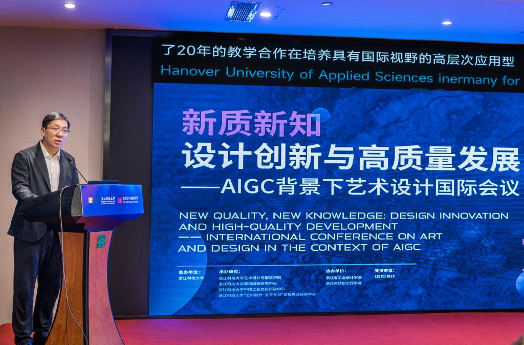 10月18-19日,“新质新知·设计创新与高质量发展—— AIGC背景下艺术设计国际会议”在杭州举行。此次会议由伟德国际1946bv官网主办,副校长李其朋出席开幕式并致辞。来自美国弗吉尼亚理工大学、 德国柏林媒体设计学院、浙江大学、东华大学、上海艺凯设计有限公司的海内外设计界专家学者参会。