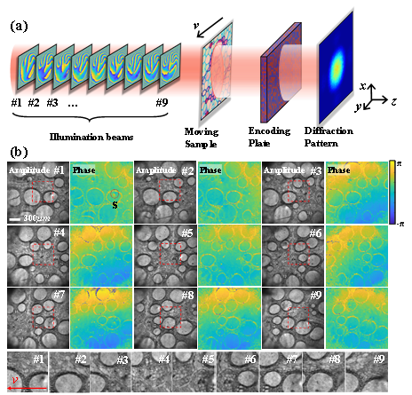 单次多帧相位成像在检测连续极端物理现象中发挥着重要作用,尤其对于不可重复变化和不确定性的介质密度测量,具有独特的优势。然而传统的超快成像很难实现相位测量,对于一般的多帧相位成像方法,空间分辨率和信噪比受限于成像帧数。在这项研究中,我们提出了一种基于轨道角动量复用编码的相干衍射成像方法。该方法采用一系列多涡旋照明场,并结合波前调制以及涡旋复用相位检索算法,实现对动态样品的多模态复振幅成像。实验结果表明,该方法能够从单个衍射光斑中实现对动态样本的9帧高分辨率相位成像,空间分辨率可以达到9.84 µm,相位测量误差达到4.7%,有效解决了传统成像方法的局限性。该方法提供了一种轨道角动量的复用维度,并在研究半导体缺陷或瞬态连续现象方面具有潜力。(理学院)