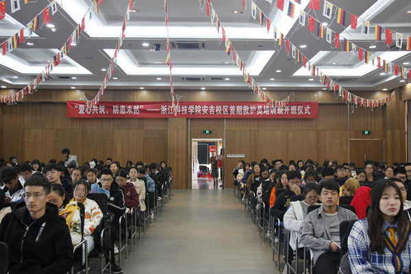 此次救护员培训分为救护理论、实践操作和资格考试三部分。安吉县红十字会派出8位资深培训师来校授课,给学员们发放了救护手册教材,通过理论宣讲和现场演示相结合的方式,介绍了红十字运动基本知识、无偿献血知识、应急救护基本知识、心肺复苏(CPR)等具体操作方法。经半天的理论和实际操作考核,最终有229位学员顺利结业,考取救护员证书。