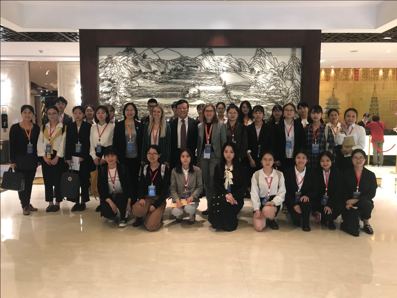 4月25日,外国语学院/中德学院的28口译志愿者在英语系方小卿老师带领下参加浙江省贸促会主办的“浙江省—下奥州商务论坛”,为奥地利政府代表团和40余家奥地利企业家对接浙江企事业单位担任口语翻译。