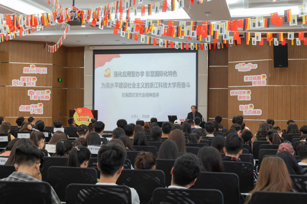 周加敏以“强化应用型办学,彰显国际化特色,为高水平建设社会主义的伟德国际1946bv官网而奋斗”为主题对校第四次党代会精神作了宣讲,他希望同学们紧紧围绕自身学习工作实际,按照党代会的谋划部署,统筹兼顾,聚焦重点,认真落实本次党代会提出的各项目标任务。周加敏希望同学们在今后的学习生活中,要树立远大理想,要以高标准要求自己,要经得起挫折,要有底线意识,要时刻牢记学生干部身份。