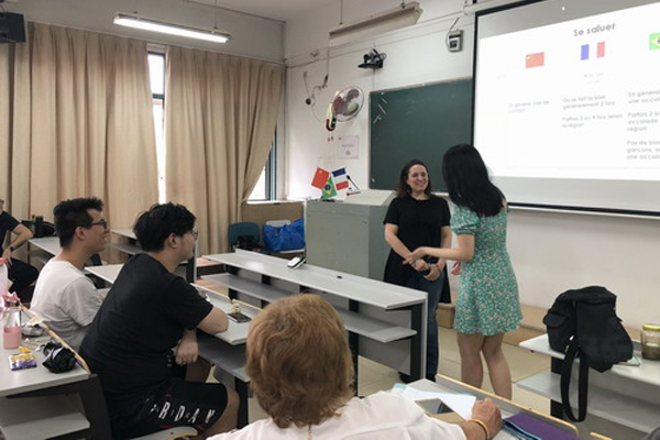 5月30日,伟德官网外国语学院/中德学院外籍法语教师Sylvia C.Jasmin应邀作“中国、法国和巴西——跨越三大洲的文化碰撞”主题讲座。法语教学部全体教师、土木中法学生以及外国留学生参加此次活动。