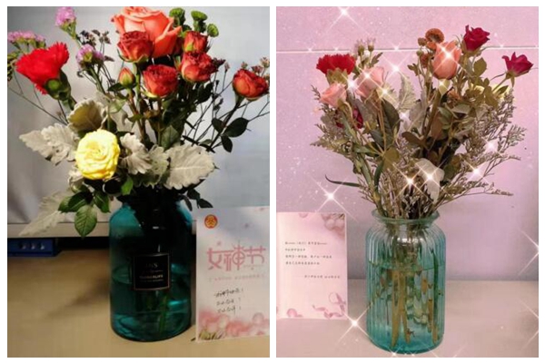 活动中,女教职工领取鲜花,现场将富有美好寓意的各类鲜花插入花瓶中,参与活动的女教职工表示:“满满的节日感,有了组织就是不一样了”。她们还纷纷插花过程及作品拍照,统一编辑好后发至邮箱,由评委们根据作品的主题意境、构图造型、色彩配置、技艺手法等方面进行点评并打分,确定一二三名。