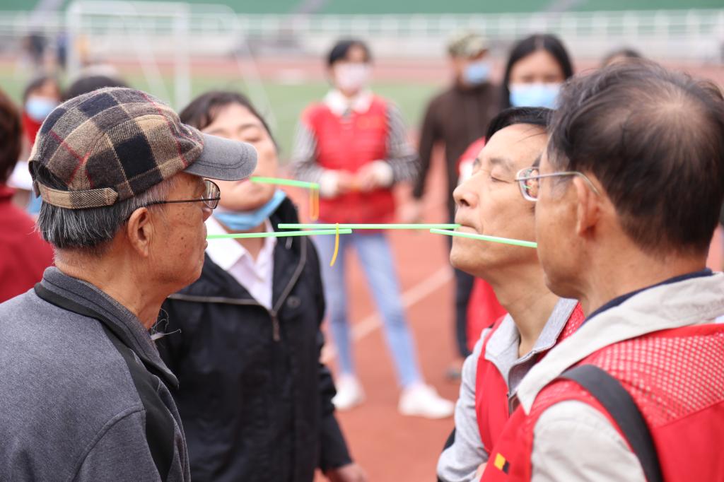 今年趣味运动会还增设“银龄乐助”志愿者团队,他们有的遇到有不懂游戏规则的参赛者时,会耐心地为他们一一介绍,仔细地解释项目规则;有的维持活动的秩序,使运动会有序地开展进行;志愿者们成为赛场亮眼的一抹中国红。