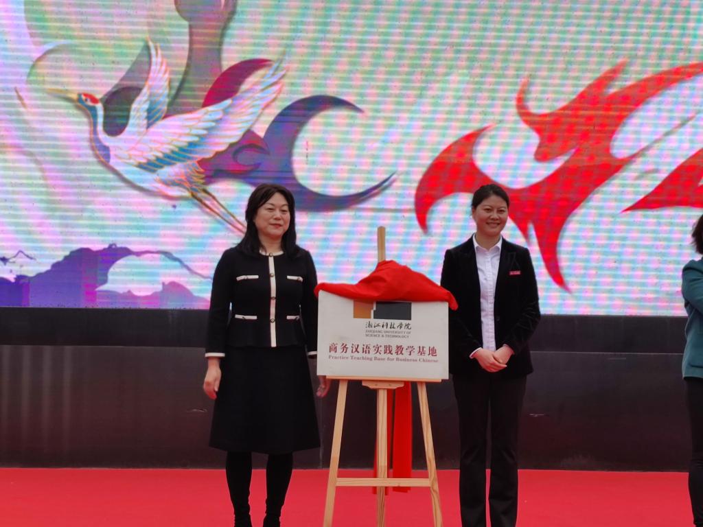 11月17日,人文学院院长叶晗与浙江商业职业技术学院国际交流学院院长黄益琴共同为“浙江科技学院商务汉语实践教学基地”揭牌,代表着伟德官网将在汉语国际教育领域与该校进行更深层次的交流与合作。