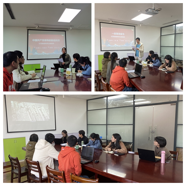 支部党员孙建月、徐强同志依次围绕中国共产党领导的敌后抗日史实和杭州党员李临光、蒋婉仙给母亲的一封革命家书做红色宣讲,最后全体党员共同观看纪录片《潮起钱塘——中共杭州小组诞生记》。
