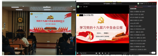 为深入学习宣传贯彻党的十九届六中全会精神,电气学院党委书记和院长第一时间走上讲台,采取线上线下不同形式,为全院师生宣讲全会精神。