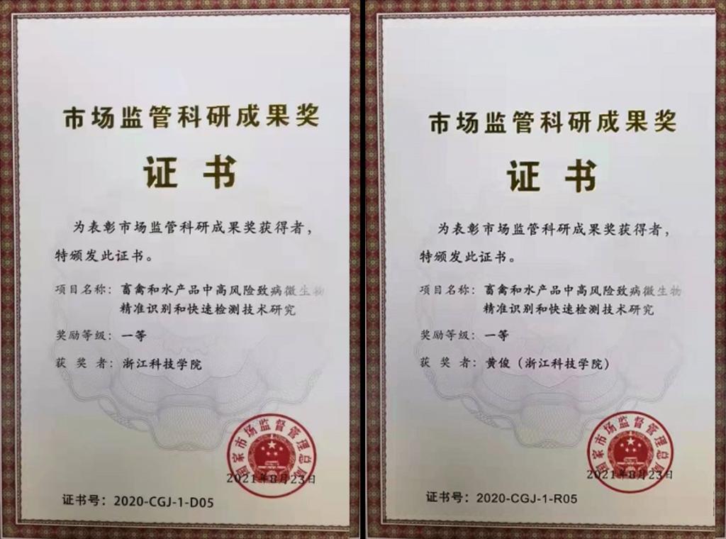 12月21日,2021年市场监管科技工作视频会议召开。生化学院黄俊教授参与申报的“畜禽和水产品中高风险致病微生物精准识别和快速检测技术研究”获国家市场监管科研成果一等奖。